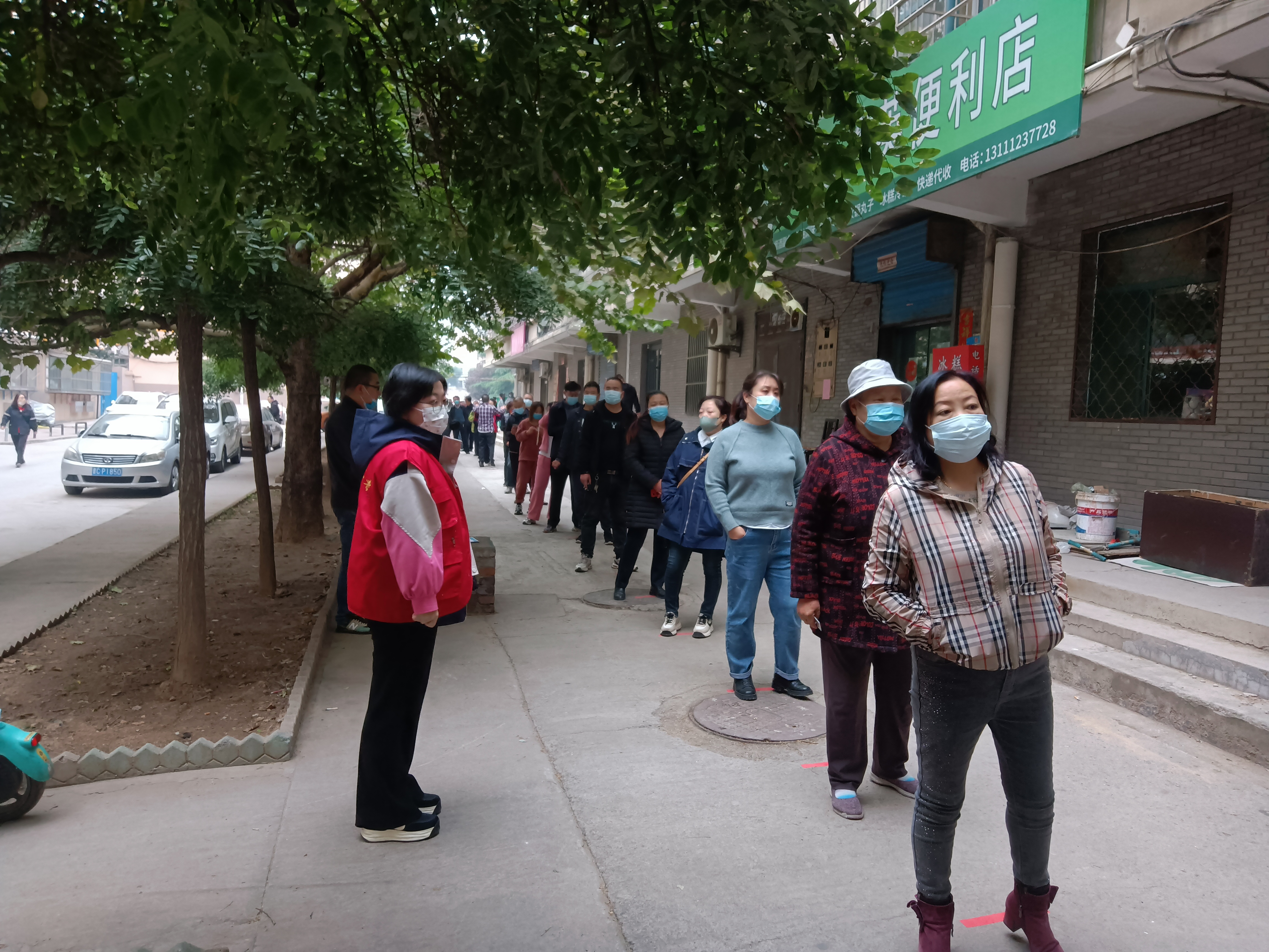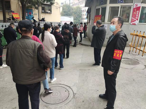 全员核酸检测开始了,市农业农村局在各个检测点服务的志愿者们全力协助医务工作者进行核酸检测工作。他们认真维护现场秩序,有序分流引导群众,不断提醒社区居民扫场所码,出示核酸检测二维码;反复叮嘱核酸检测的群众戴好口罩,间隔一米, 有序排队;对年纪大的不熟悉预约流程的群众,耐心帮助扫码验证、信息录入、二维码采集和登记预约,确保每位居民都能顺利检测。有的志愿者还穿着笨重的“大白”,坚守在核酸检测现场忙碌不停。深秋的冷风吹不散志愿者们的服务热情,人头攒动的核酸检测现场和每个疫情防控的卡点点缀着鲜艳的“志愿红”,为寒冷的秋日带来了春的暖意。