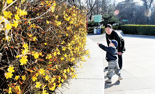 这几天气温逐渐回升,公园内的迎春花悄然绽放。市民纷纷走出家门,来到公园游玩,感受一簇簇竞相开放的迎春花带来的春意。晋向华 张泽慧摄